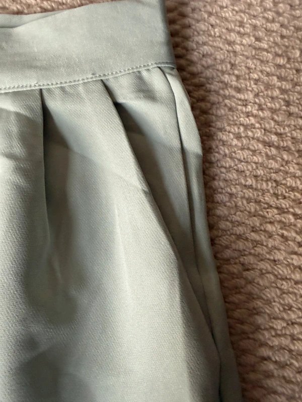 The Light Sage Wide Leg Tailored Trousers is available in sizes M.