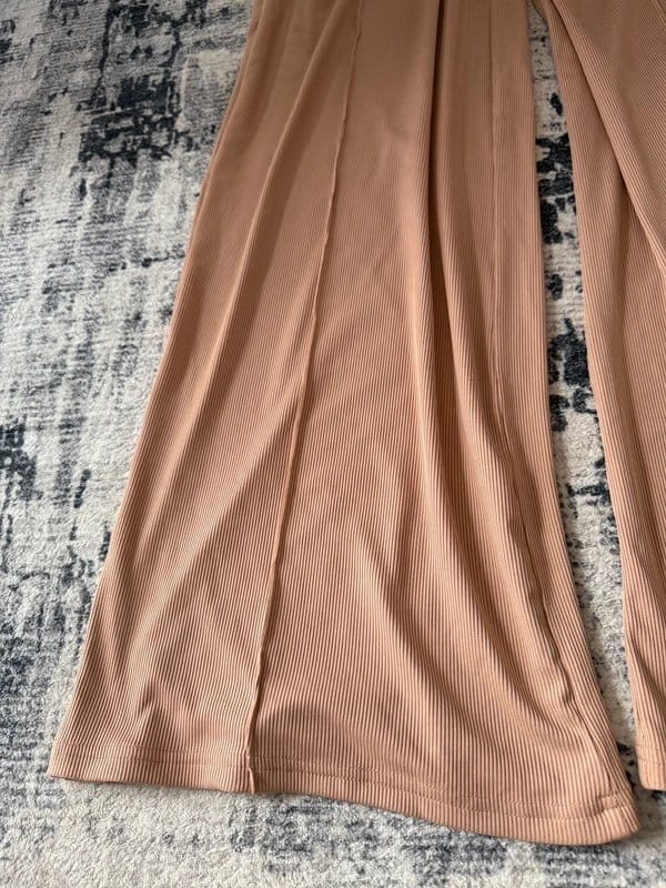 See all outfit ideasStylish wide-leg trousers in beige corduroy fabric. Perfect for a casual yet chic look, these trousers feature a relaxed fit and a flattering silhouette.