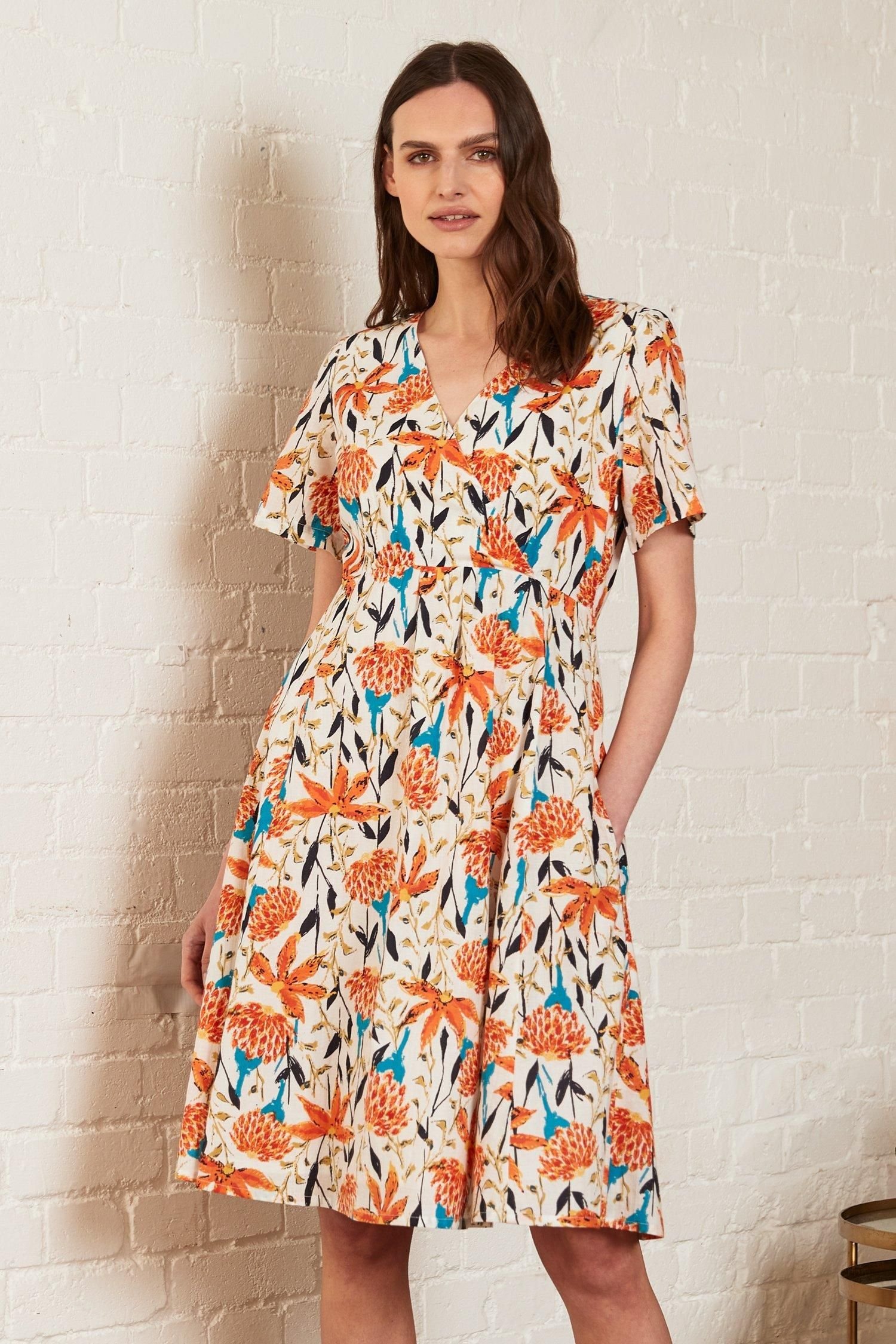 The Nomads Clothing White Floral Kimono Sleeve Dress is available in sizes 10, 12, 14, 18, 8.