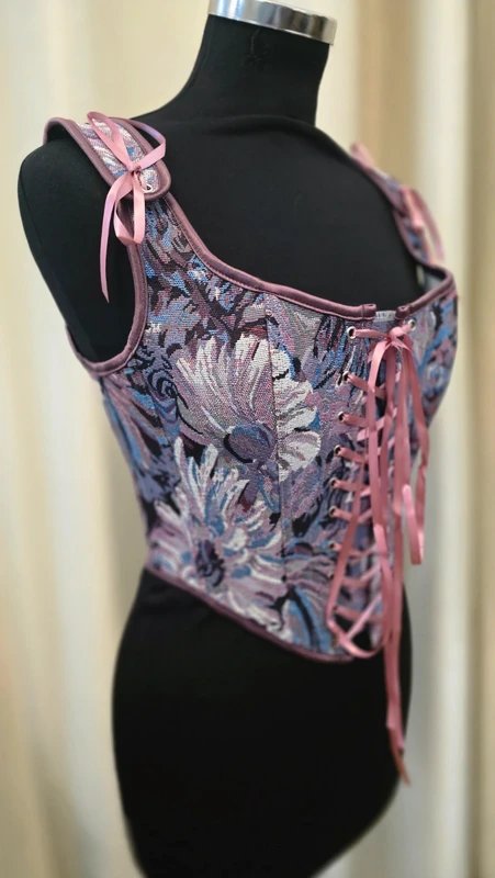 The NSPTT Brocade Overbust Bustier Corset in Lilac is made from brocade, bone.