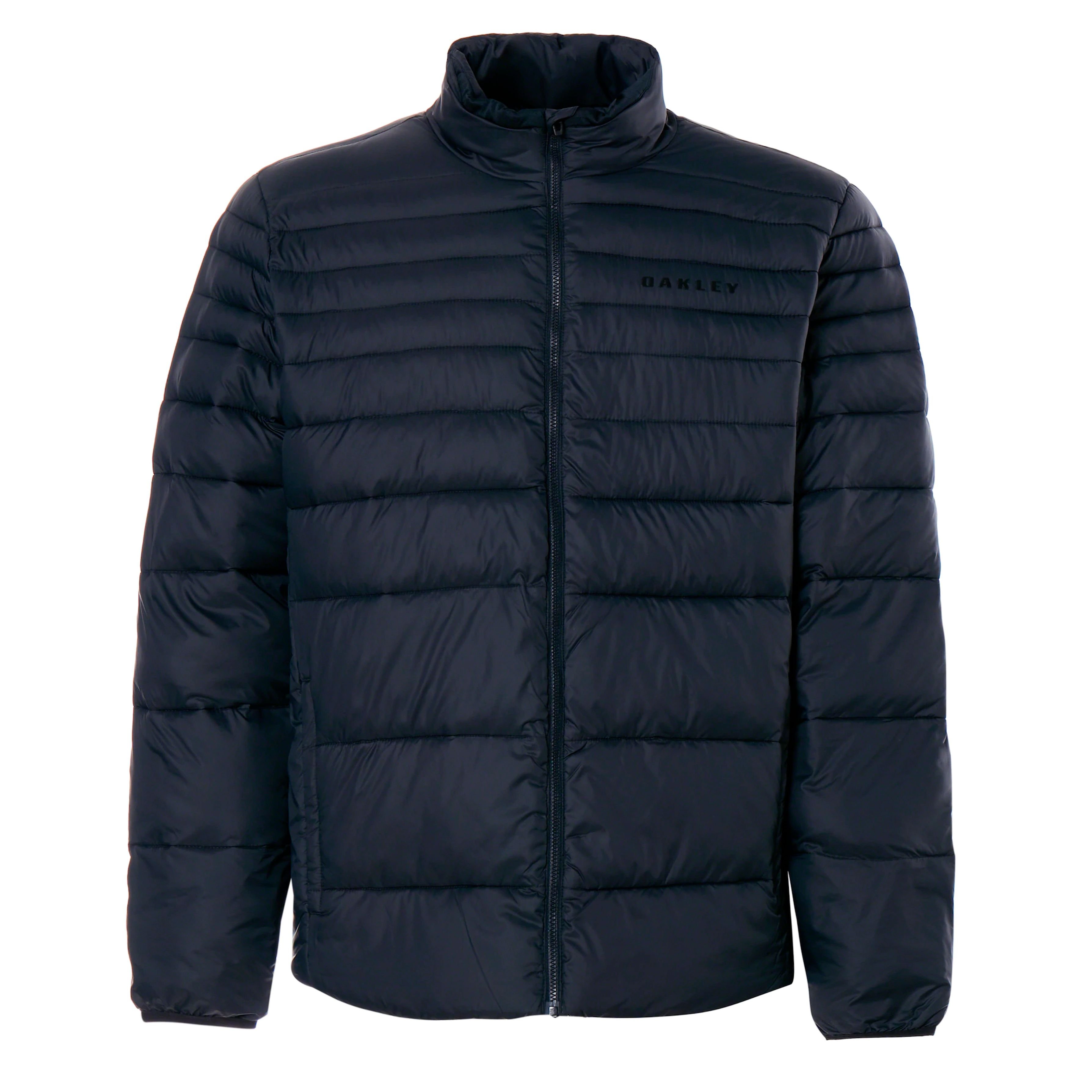 Stylish Oakley Down Bomber Jacket in navy blue. Featuring a padded design for warmth and a zipper closure for easy wear. Ideal for cool weather.