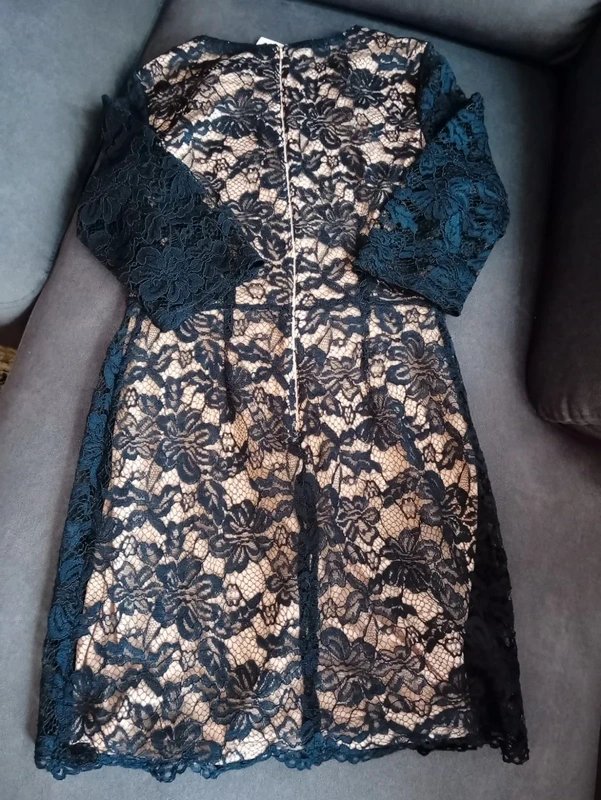 A stunning and elegant lace midi dress from Oasis. The dark navy dress is fully lined with a blush pink lining, making it perfect for any special occasion.
