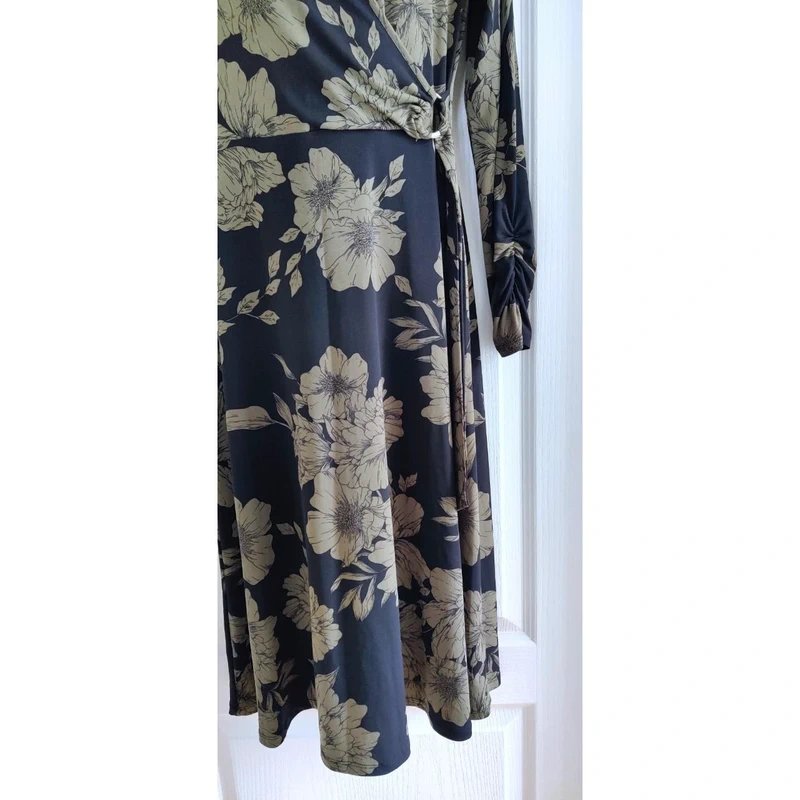 The Oasis Floral Jersey Wrap Midi Dress in Black Olive Green is available in sizes S.