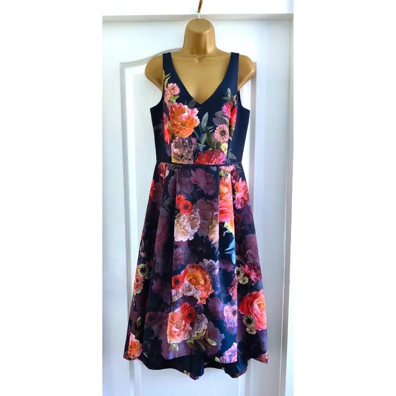 The Oasis Floral Hi-Low Midi Occasion Dress is available in sizes S.