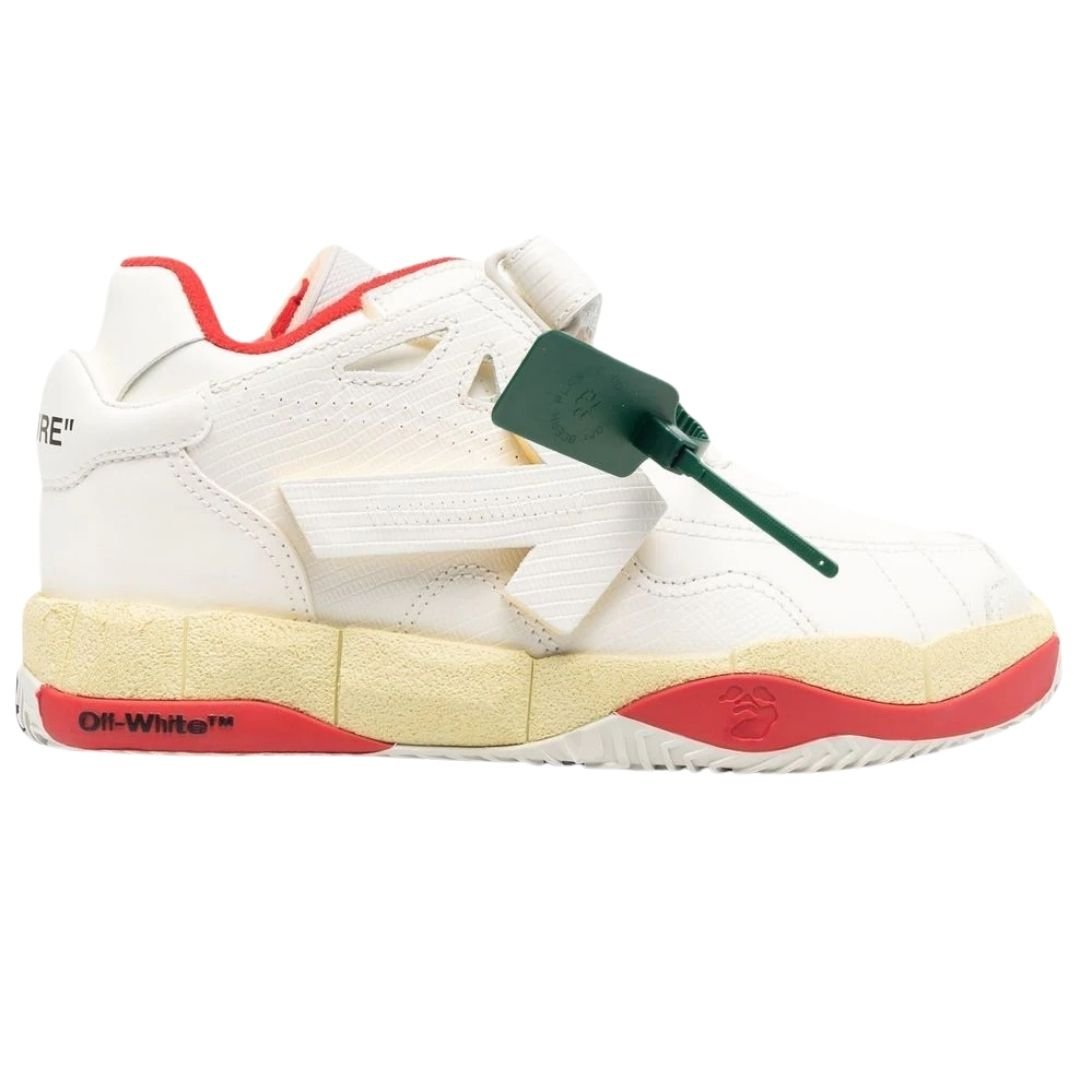 The Off-White Men's Low Top Puzzle Couture White Sneakers is made from leather.