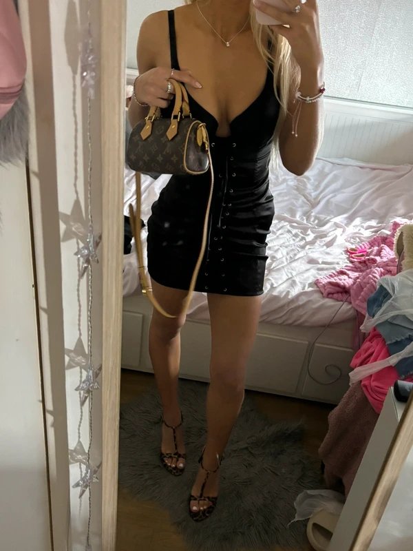 The Oh Polly Black Silk Dress with V-Neckline is ideal for evening, night out, holidays.