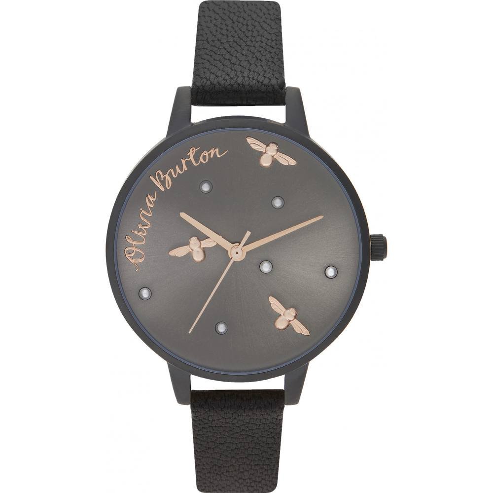 Stylish Olivia Burton watch in black with a quartz movement. Features a leather strap and a bee-themed dial for a unique touch. Ideal for everyday wear.