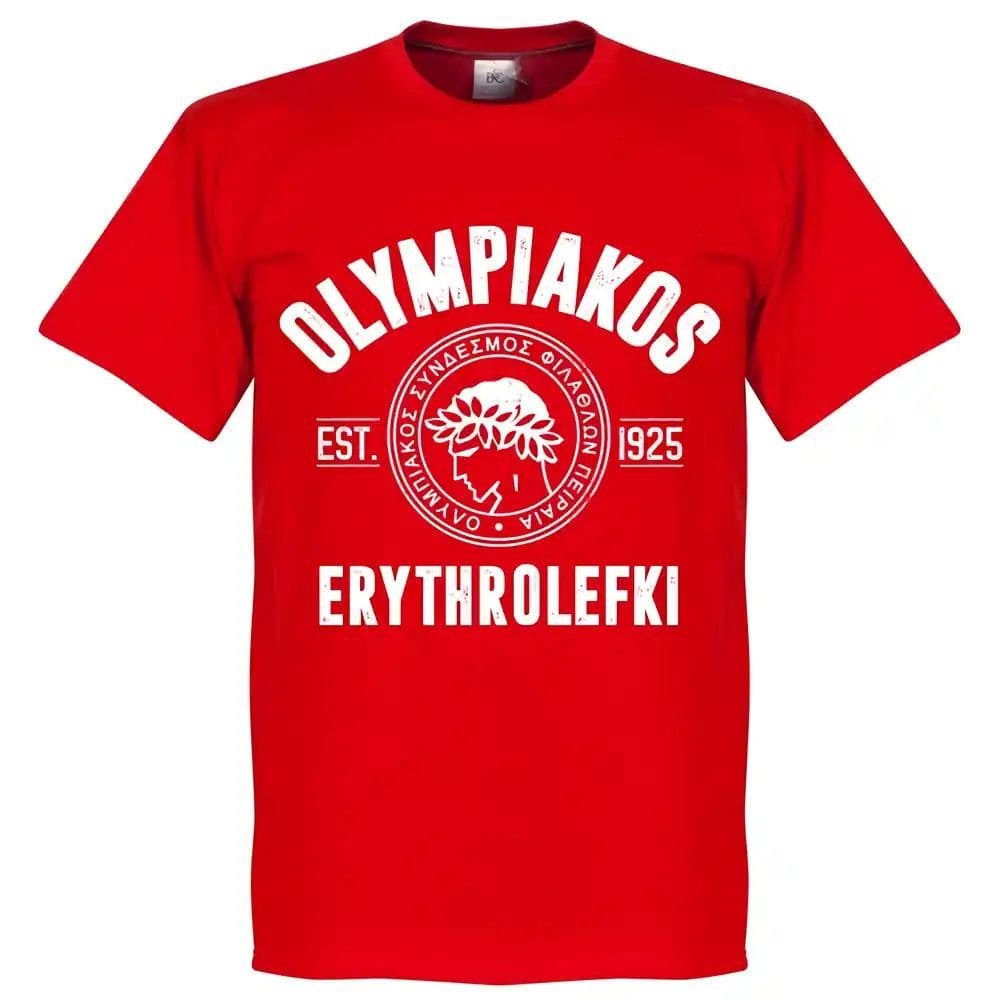 The Olympiakos Men's Established Red T-Shirt is made from cotton.