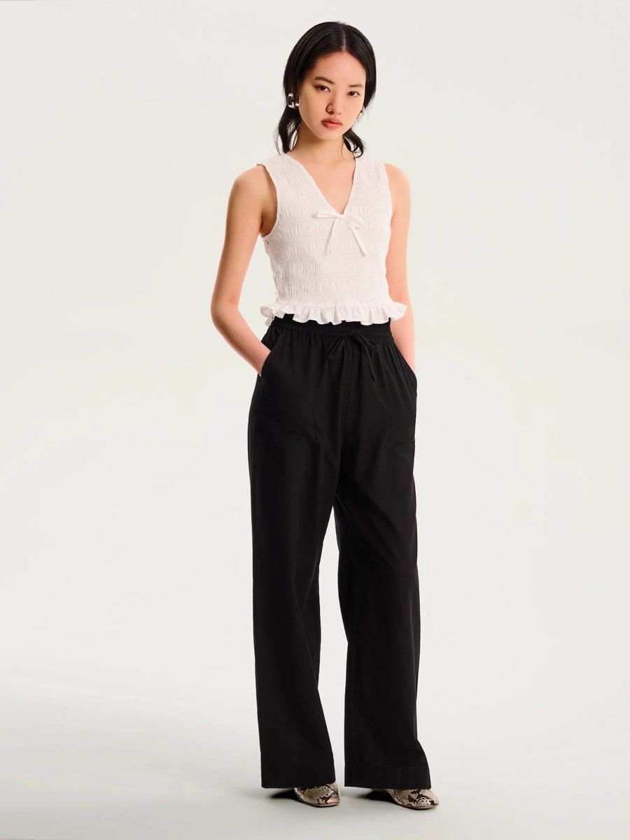 The OMNES Wide-Leg Rommy Trousers in Black is ideal for casual, work.
