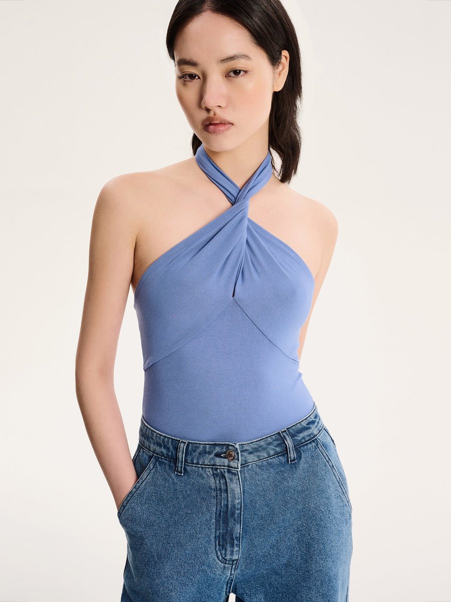 Our Nelson top features a chic twist halterneck design, offering a fresh take on a classic silhouette. Made from luxurious viscose derived from bamboo, this top is not only incredibly soft and breathable but also planet-conscious.