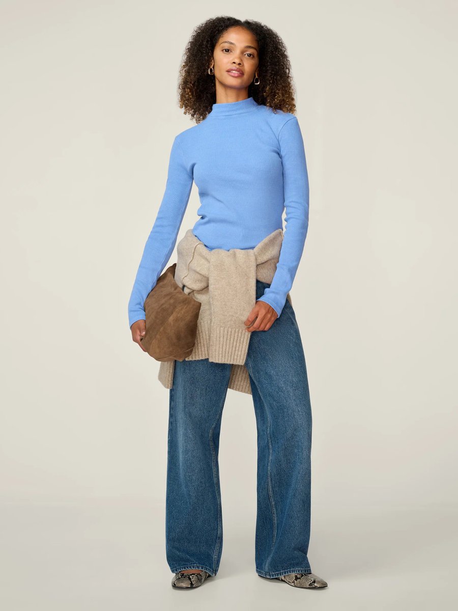 The OMNES Mock Neck Long Sleeve Jumper in Azurine is ideal for casual, everyday.