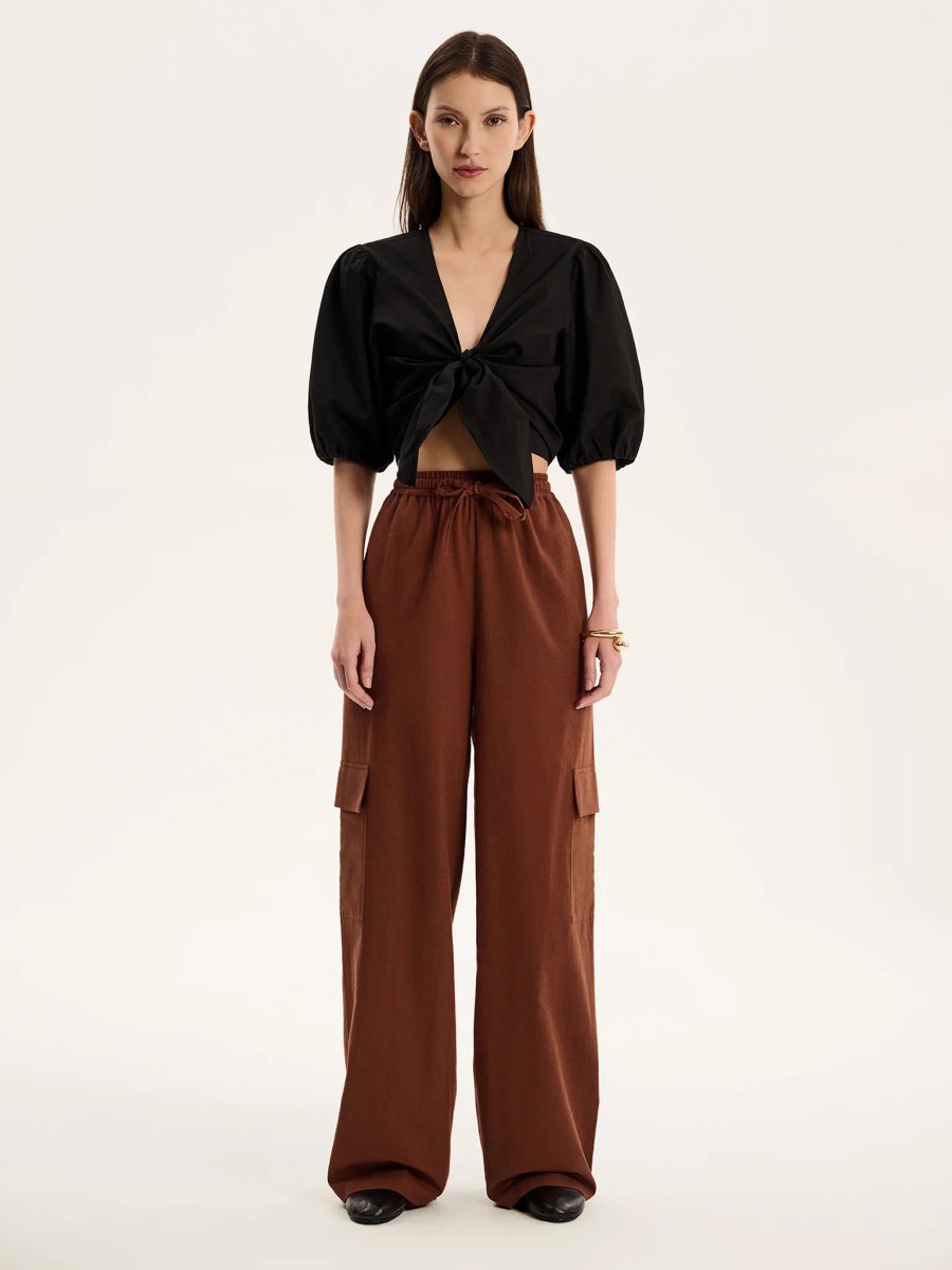 The OMNES Relaxed Cargo Trouser in Chocolate is available in sizes 10, 12, 14, 16, 18, 20, 22, 24, 6, 8.