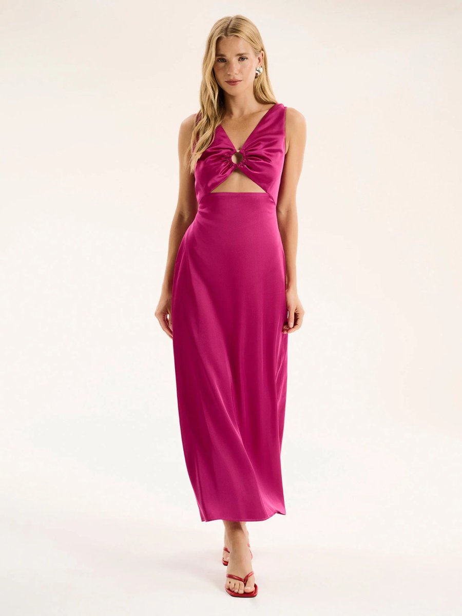 The OMNES Ring Detail Midi Dress in Magenta is ideal for evening, party.
