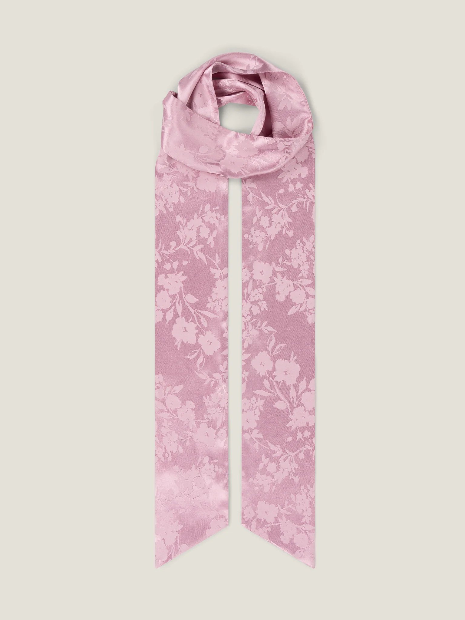 The Scarlett scarf in dusty pink is the perfect finishing touch. Crafted from floral jacquard Lenzingª Ecoveroª viscose, its soft, lightweight fabric drapes beautifully. Whether tied around the neck, worn in your hair, or casually draped, Scarlett offers a subtle way to elevate and individualise your occasion look.