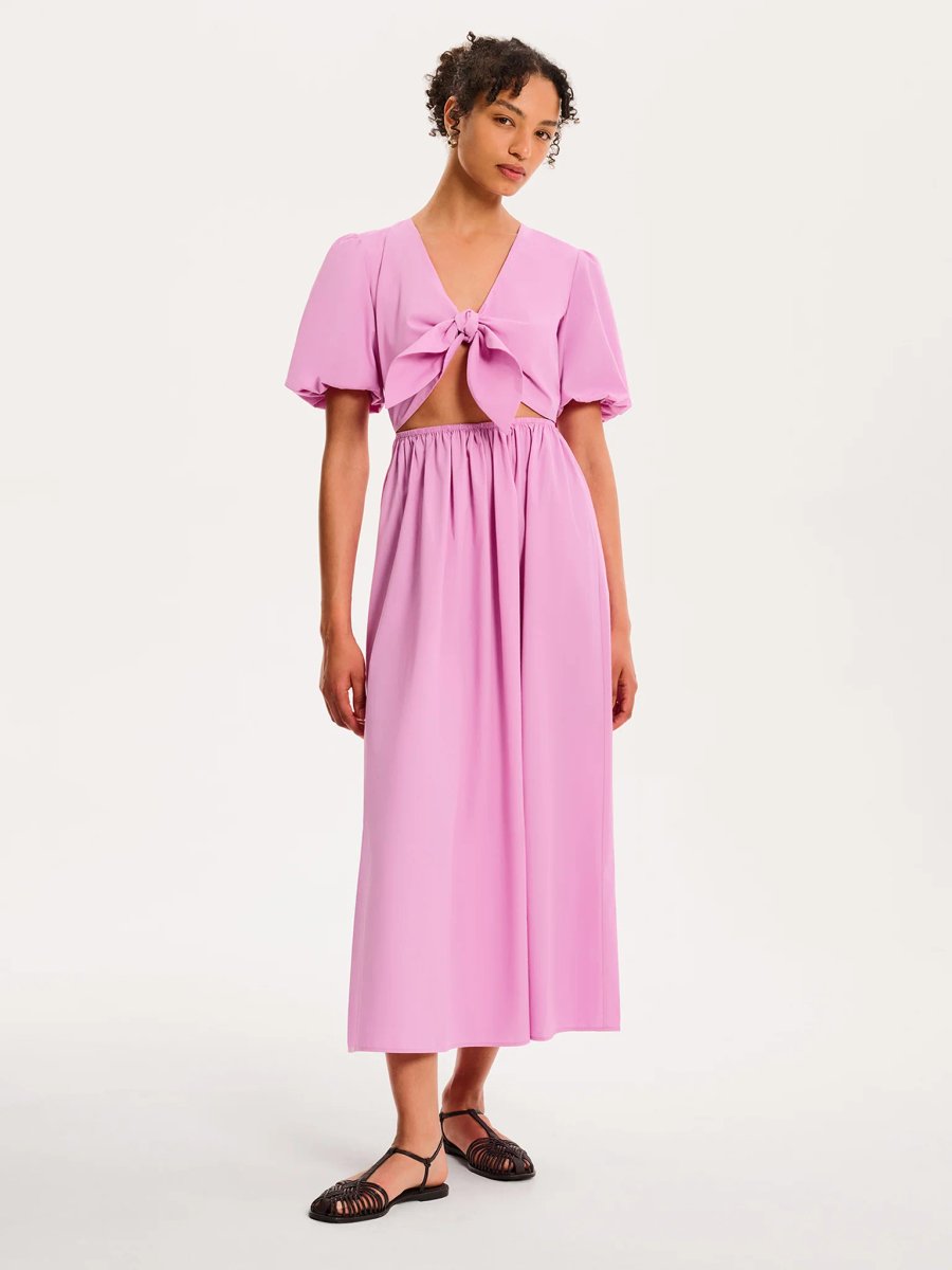 The OMNES Lilac Joy Midi Dress with Tie-Front is ideal for casual, party, weekend.