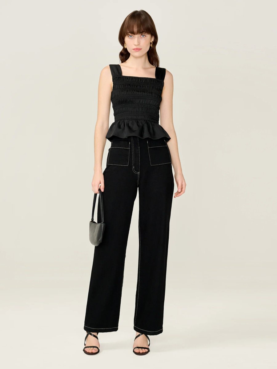 The OMNES Sleeveless Peplum Top in Black is ideal for everyday, dressier moments.