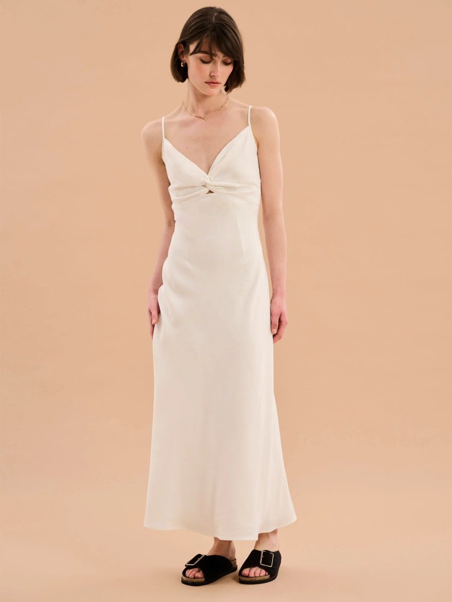 The OMNES Strappy Midi Dress in White is ideal for casual, evening.
