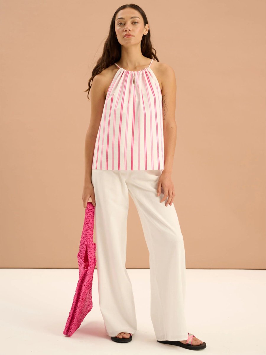 Crafted from responsibly sourced cotton-linen, these trousers feature an elasticated waist and straight-leg silhouette in bright summer white, perfect for warm months.