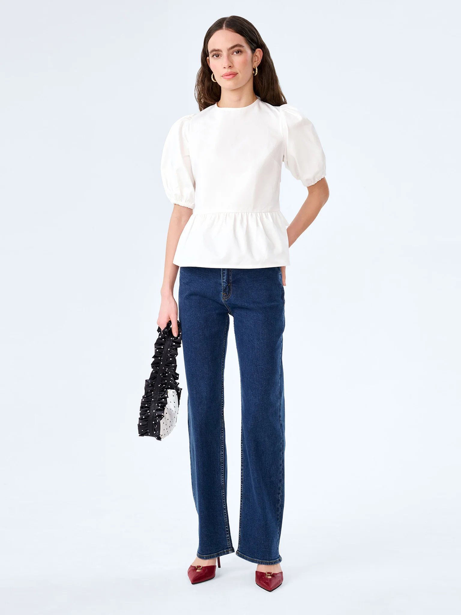 Crafted from breathable cotton, the Tiana top is a fresh take on feminine everyday dressing. It features a high neckline and soft half-length puff sleeves for gentle volume. In contrast, the open back is all about romance with statement tie detailing and a peplum frill hem.