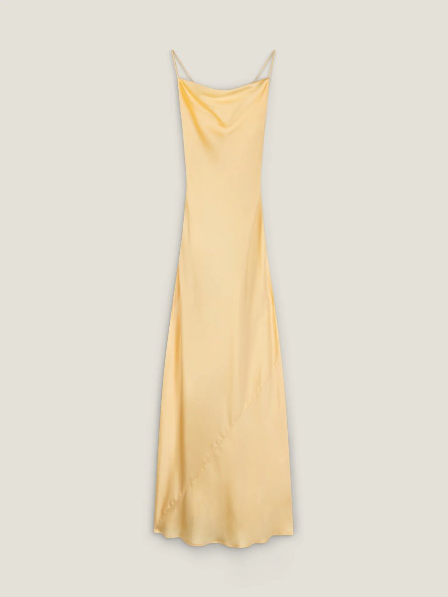 The OMNES Double Cream Satin Maxi Dress is ideal for evening, wedding-guest, party.