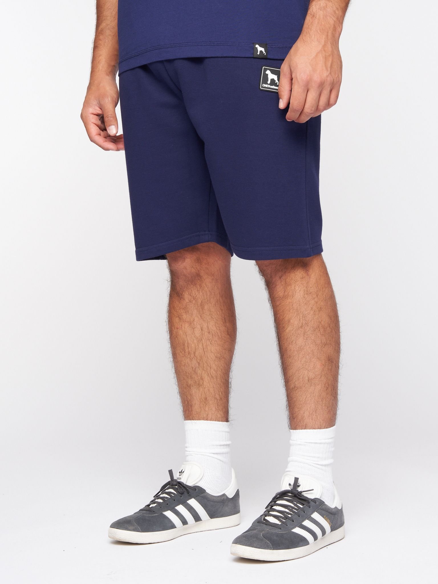 Casual Navy Dexon Shorts by One True Saxon, crafted from a blend of 65% cotton and 35% polyester. These shorts offer a relaxed fit and are perfect for everyday wear. The classic design ensures both comfort and versatility.