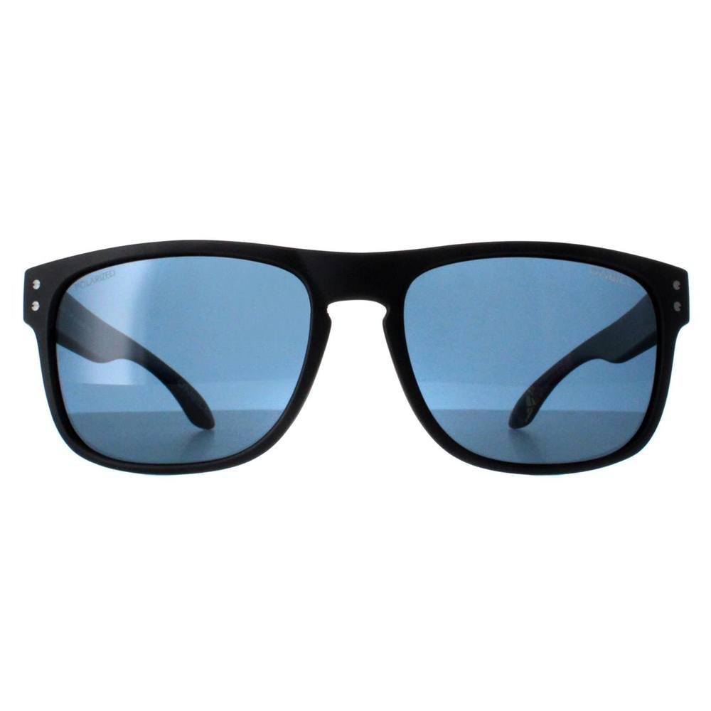 Classic rectangle sunglasses with a sleek matte black acetate frame and blue polarized lenses. Ideal for outdoor activities and casual wear, these sunglasses offer UV protection and a contemporary look.