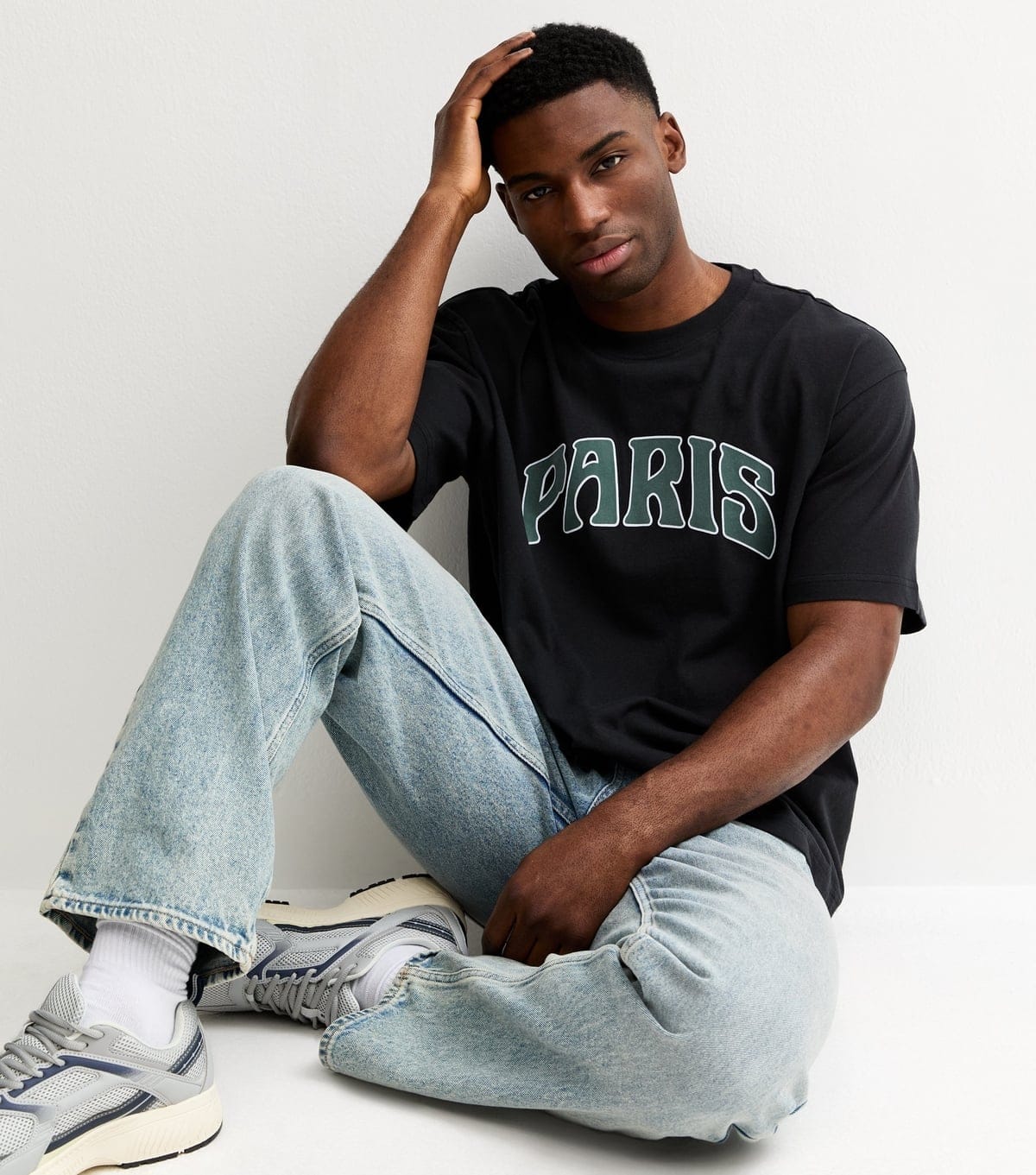 Relaxed-fit black cotton jersey t-shirt from Only & Sons featuring a distressed Paris graphic across the front. Designed for comfort with dropped shoulders.
