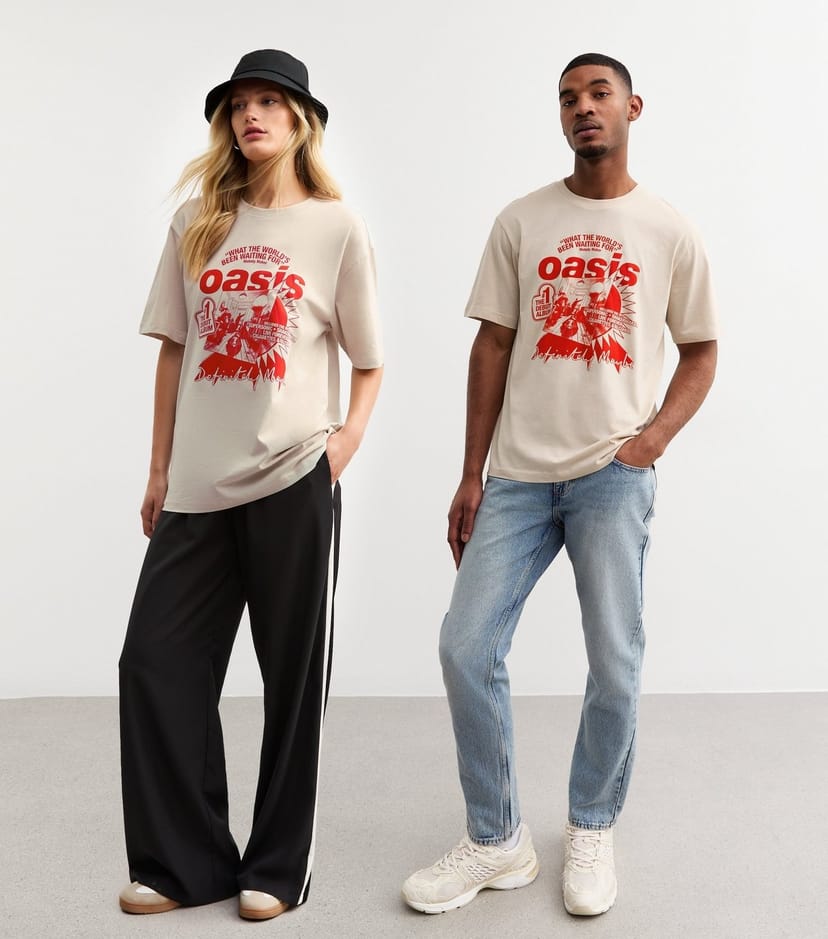 View New Look UK's returns policyUnisex Oasis print T-shirt in off white and red from Only & Sons. Featuring a crew neckline and short sleeves, this jersey top is perfect for casual days.