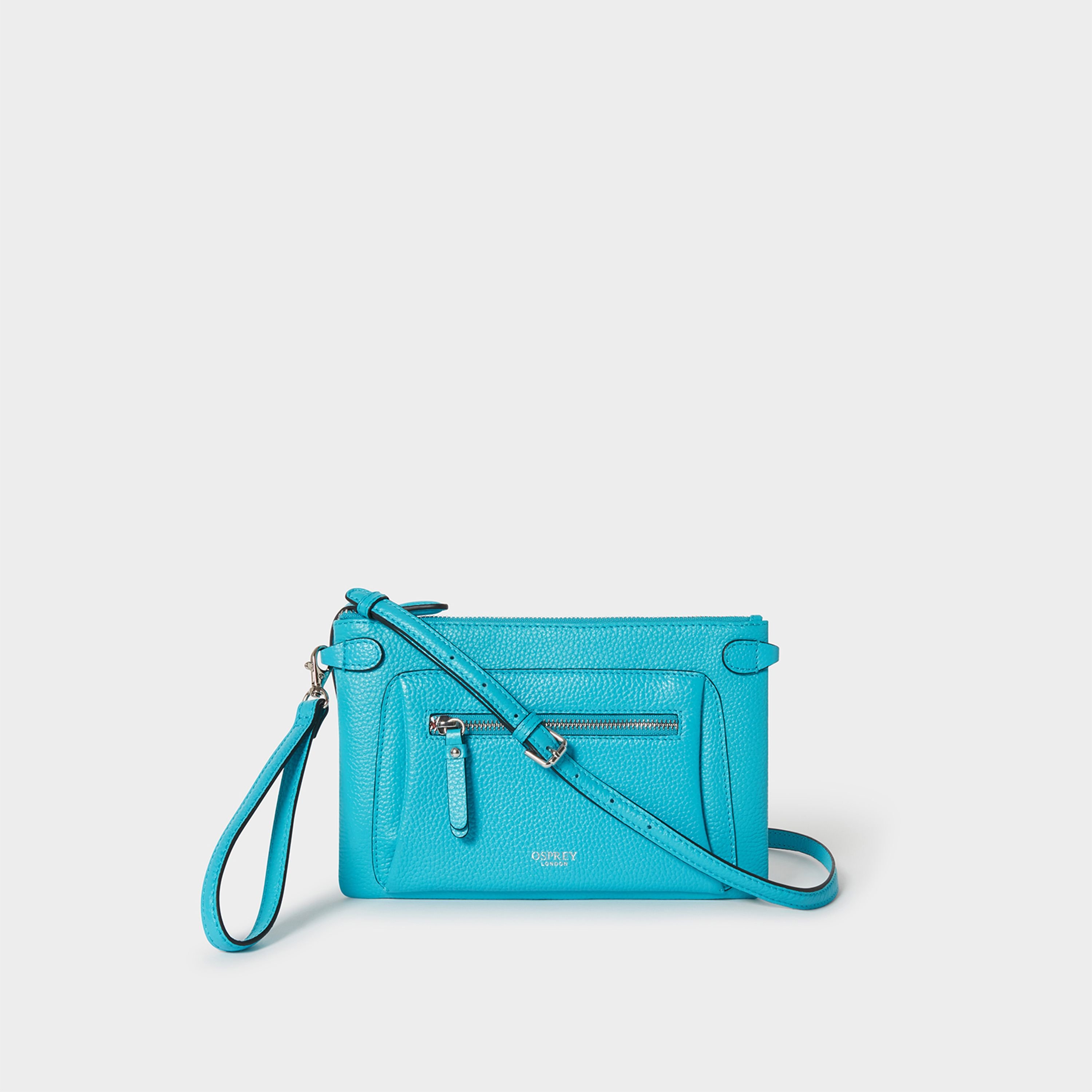 The OSPREY LONDON Aqua Leather Crossbody Clutch Bag is ideal for evening, casual.