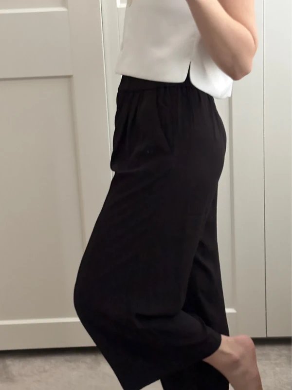 Black Cropped Wide Leg Trousers from & Other Stories. Crafted from 100% viscose, these trousers feature a high elasticated waist for a comfortable and flattering fit. Perfect for casual and smart-casual occasions, these wide leg trousers offer a modern and stylish look.