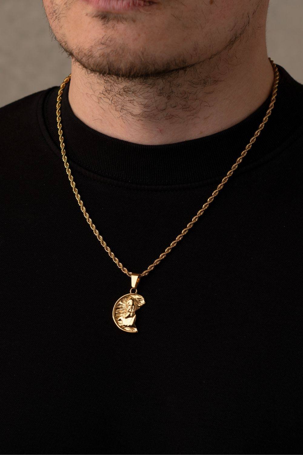 Elegant gold irregular Zeus pendant necklace crafted in premium 18K gold. Features a detailed 24mm depiction of Zeus, ruler of the Olympian gods, symbolising strength and authority.