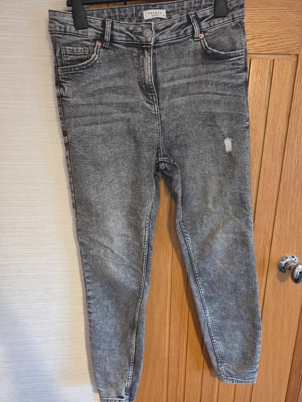 The Papaya Grey Wash Skinny Jeans is available in sizes M.