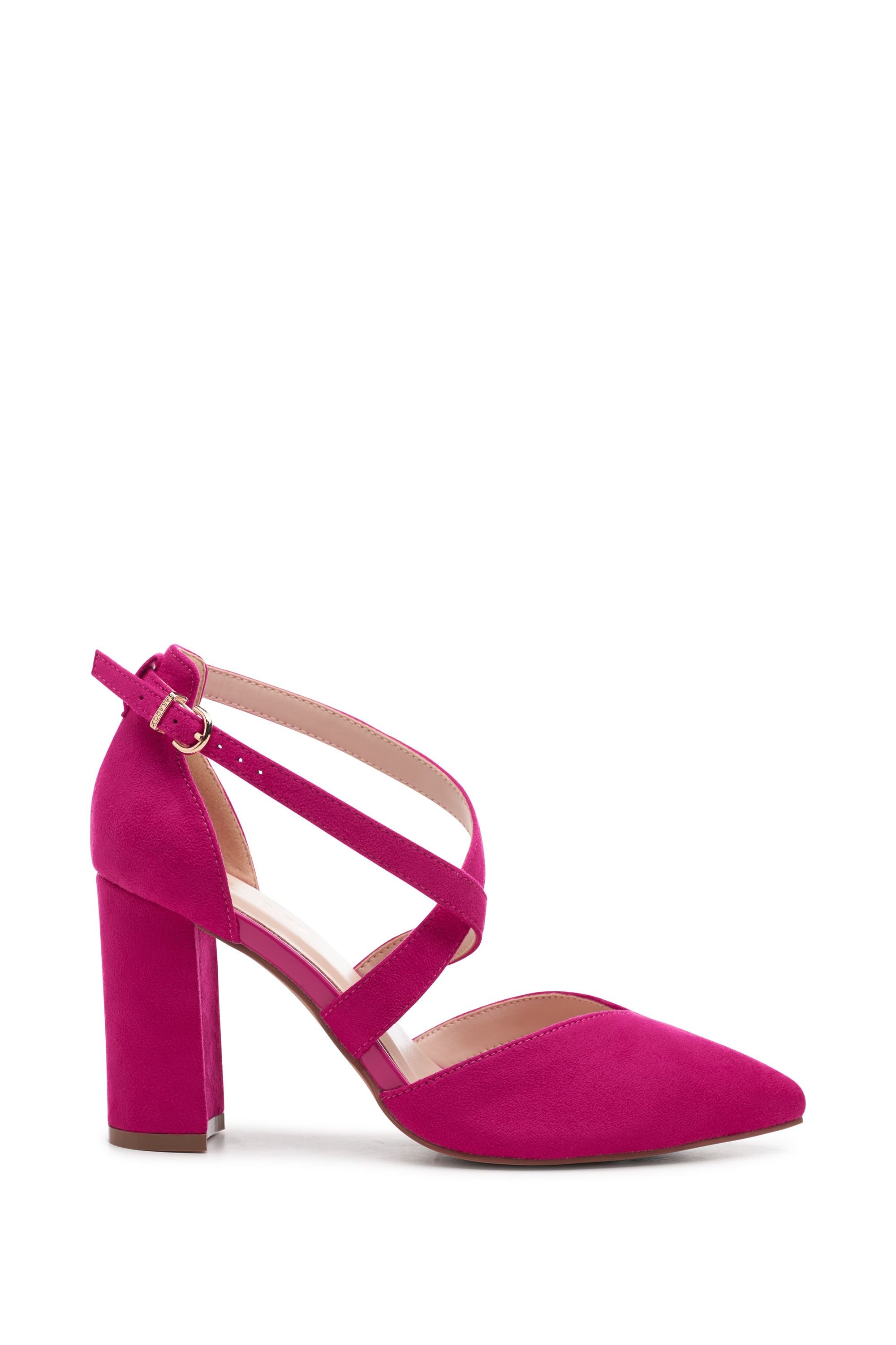The Paradox London Fuchsia Cross Strap Court Shoes is made from suede.