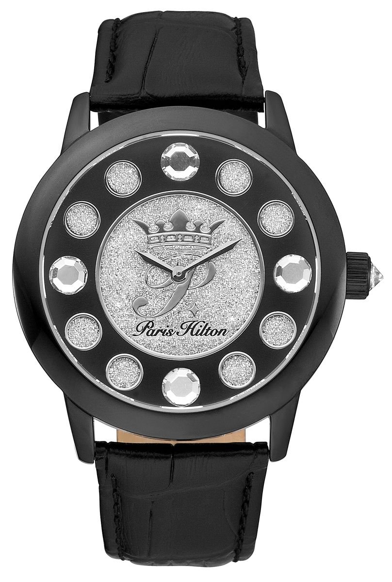 Stylish Paris Hilton Fame Black Watch with a sparkling dial and crystal accents. Features a signature Paris Hilton logo and crown emblem, perfect for adding a touch of glamour to any outfit.