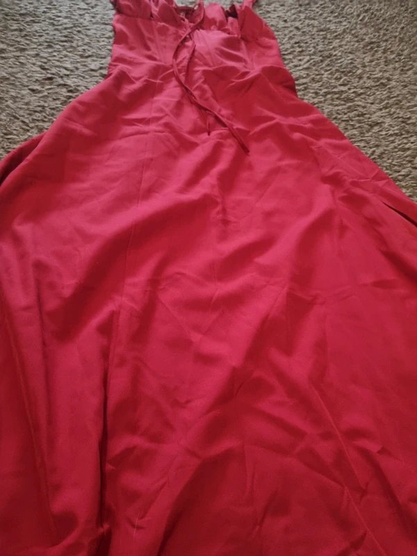 The Parthea Burgundy Ruched Corset Milkmaid Dress is available in sizes L.