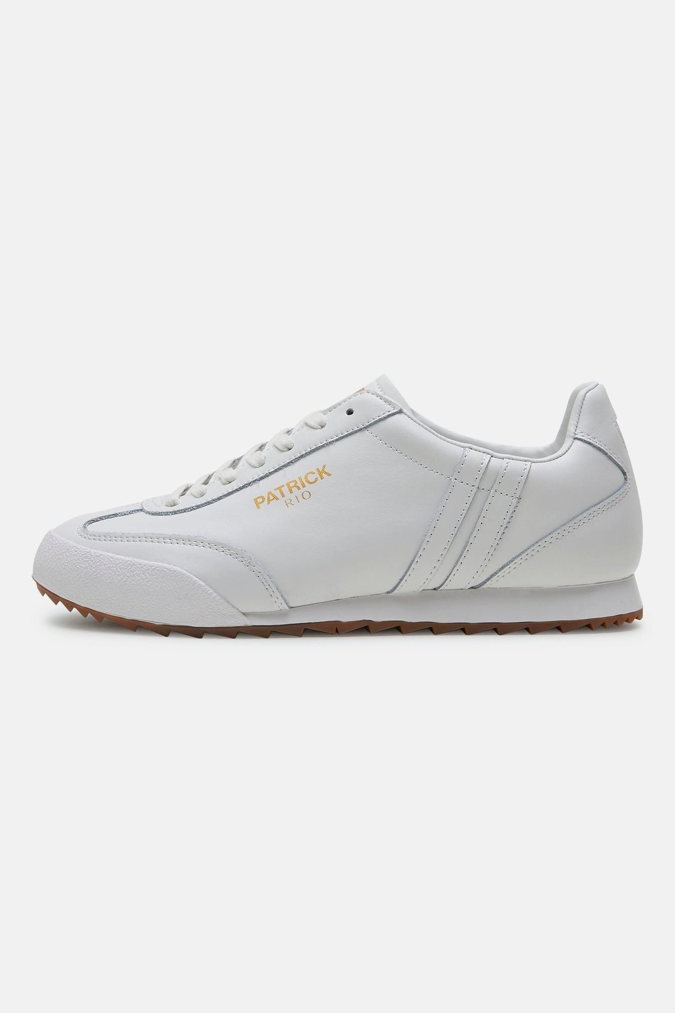Minimal, versatile, and built with a sleek silhouette, the Patrick Rio Runner in white leather offers timeless style for everyday wear. The smooth premium leather upper pairs with matching leather overlays, delivering durability and a refined finish.