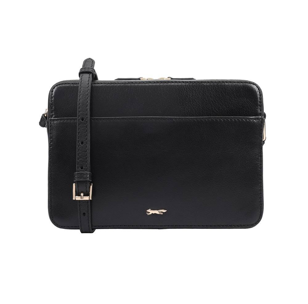 Stylish Paul Costelloe Kouti leather crossbody bag in black. Features a double zip closure, a front slip pocket with magnetic closure, and a spacious interior with a slip pocket for your mobile. Perfect for everyday use.