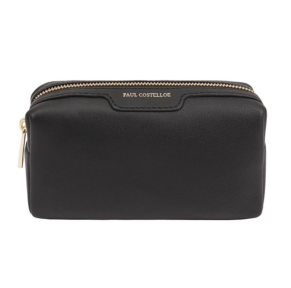 Stylish black leather pouch from Paul Costelloe. The SESIA is perfect for travel or as an everyday make-up bag. It features ample space and a sleek design.