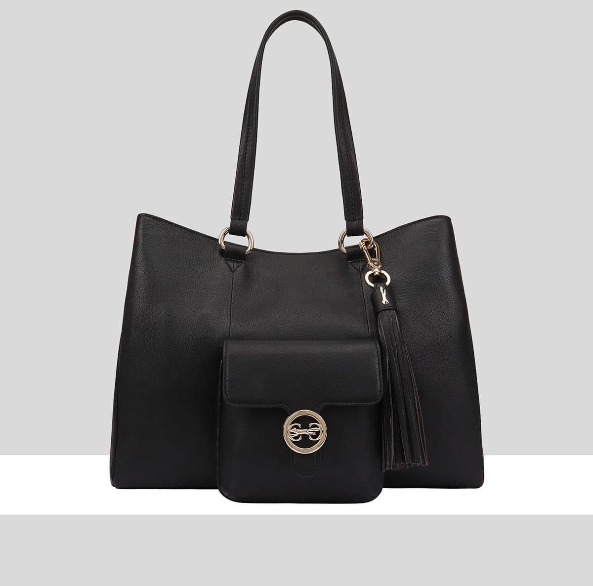The Paul Costelloe Women's Shebelle Leather Shoulder Bag in Black is ideal for work, evening, casual.