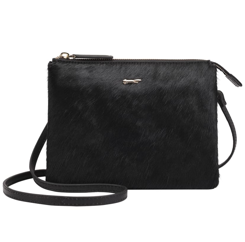 Sleek leather crossbody bag by Paul Costelloe in black. Features a secure zip closure, adjustable strap, and a streamlined interior for practicality. Ideal for everyday use.