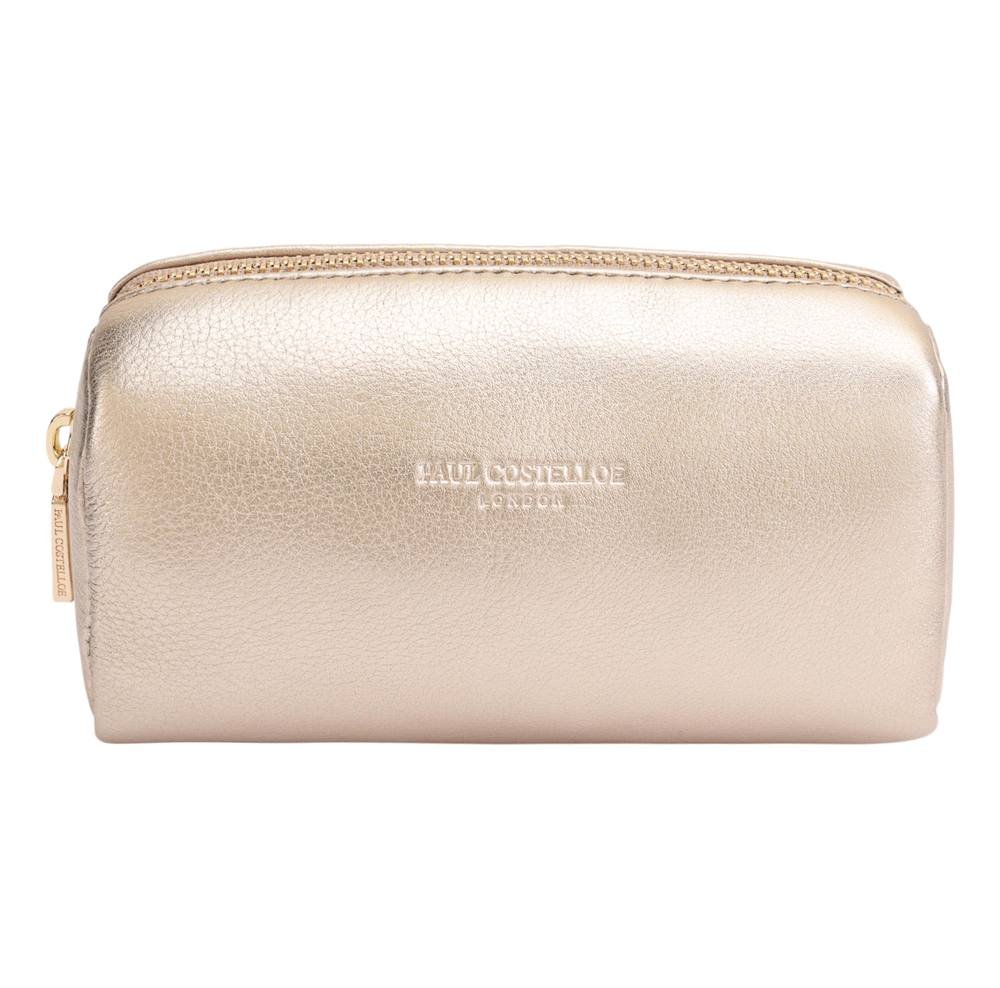 Stylish Paul Costelloe make-up/jewellery case in gold leather. Compact yet spacious, it's perfect for travel and holding your essentials with ease. A thoughtful choice for gifting or personal use.