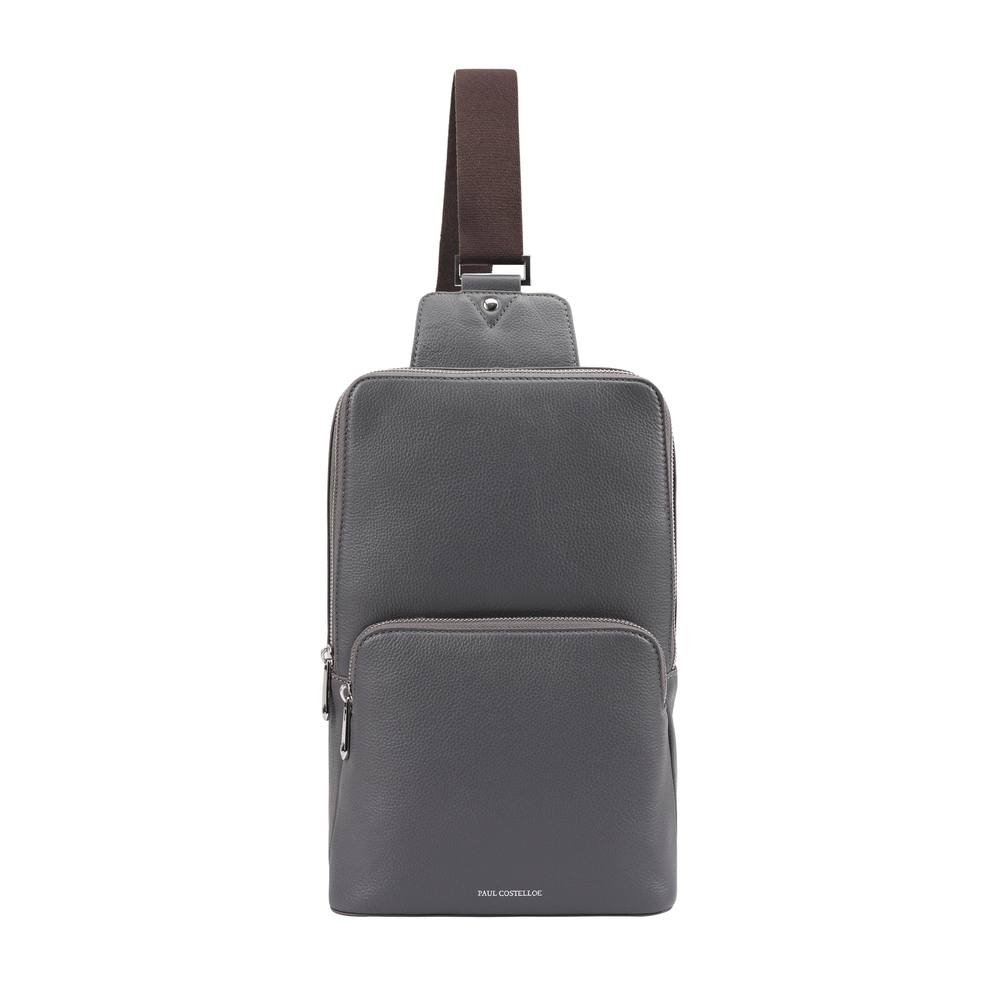 Sophisticated Paul Costelloe manbag in grey leather. Features a minimalist design with clean lines and a classic silhouette. Ideal for the office, travel, or city exploration.