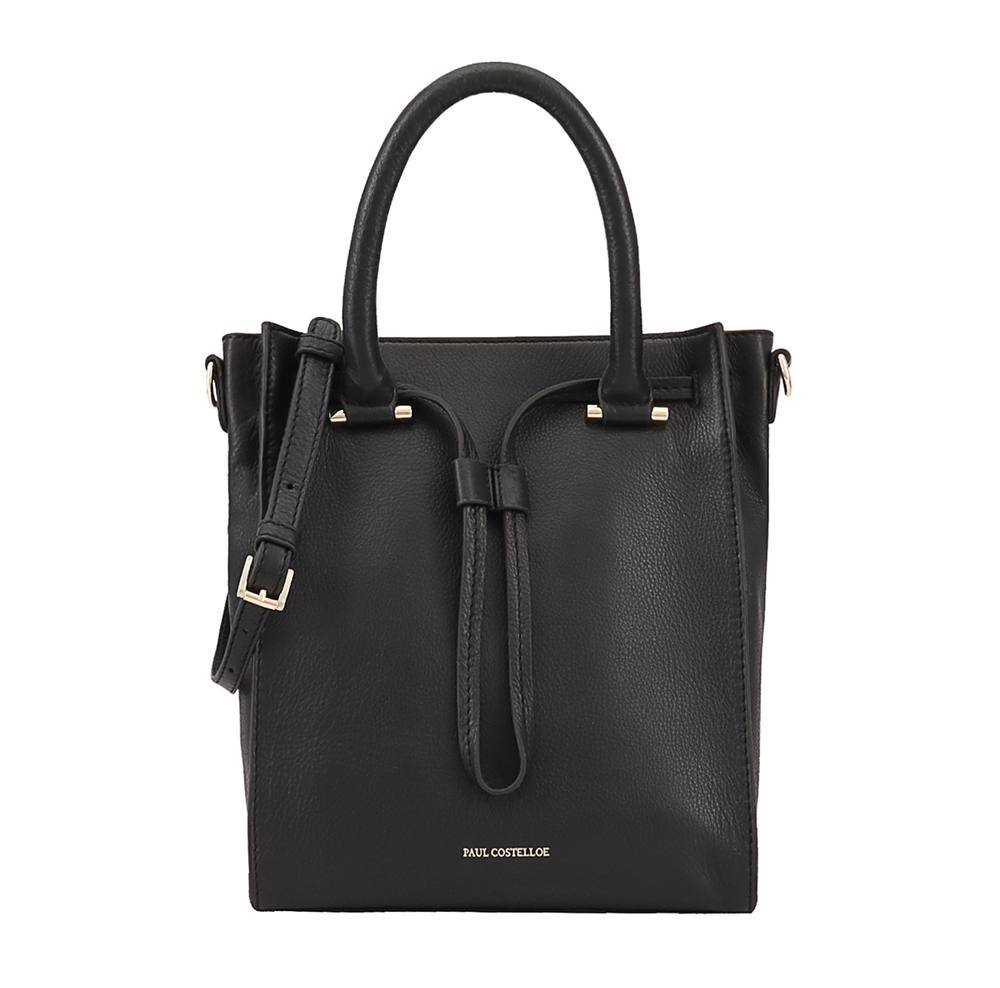 The Paul Costelloe Jet Black Leather Mini Bucket Bag is available in sizes ONE SIZE.
