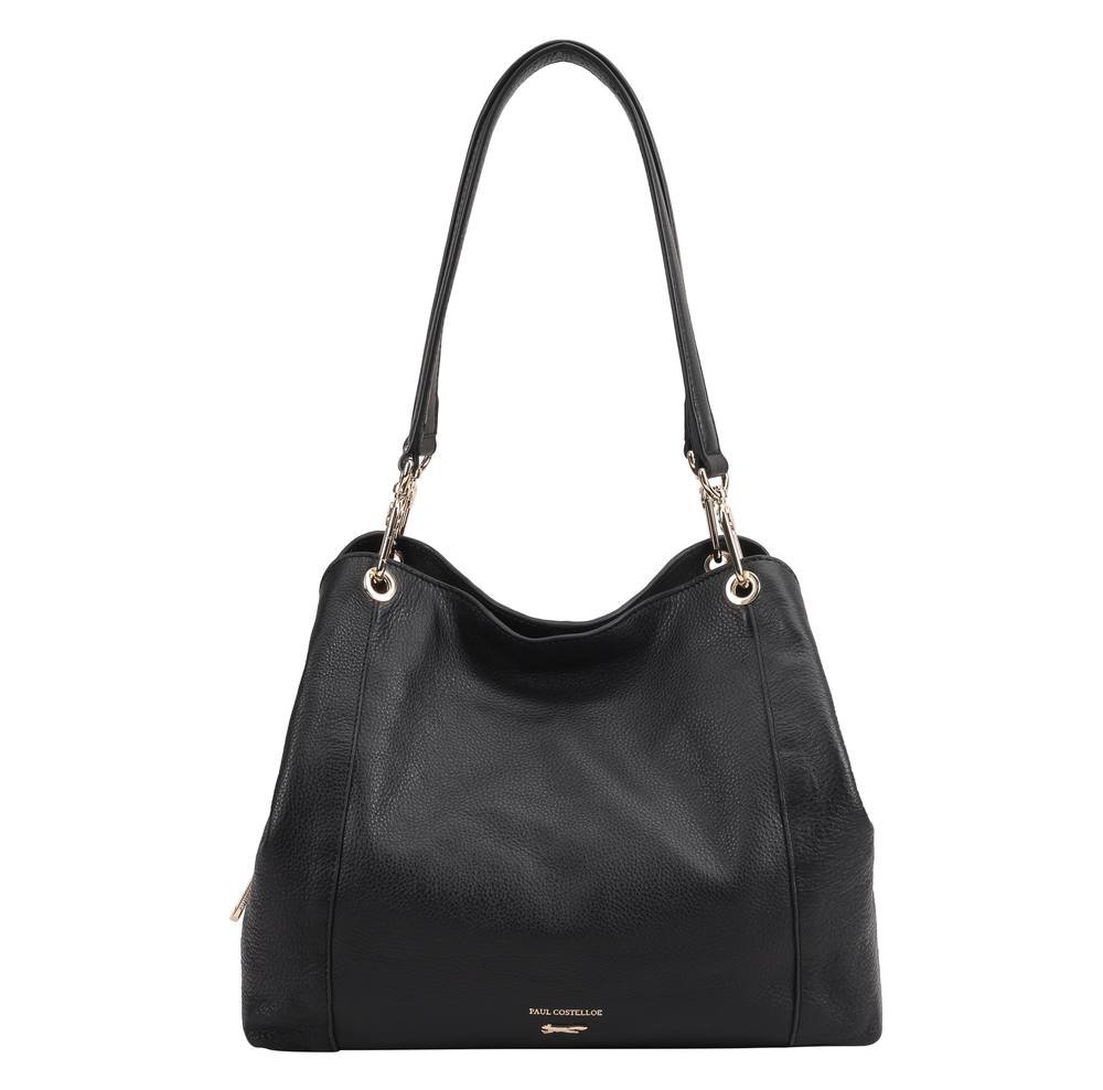 Stylish Paul Costelloe Tanaro shoulder bag in jet black crafted from 100% full-grain leather. Features a slouchy silhouette, comfortable shoulder straps, and a spacious interior for daily essentials. Perfect for effortless everyday elegance.