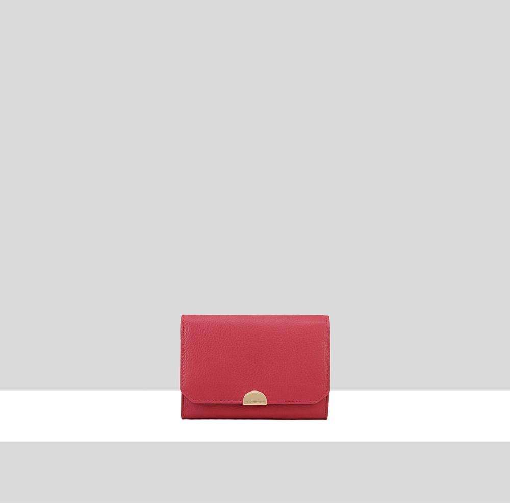 Compact pink leather card and note case by Paul Costelloe. Features dedicated sections for cards and notes, along with a separate zipped pocket for coins. Ideal for everyday and travel use.