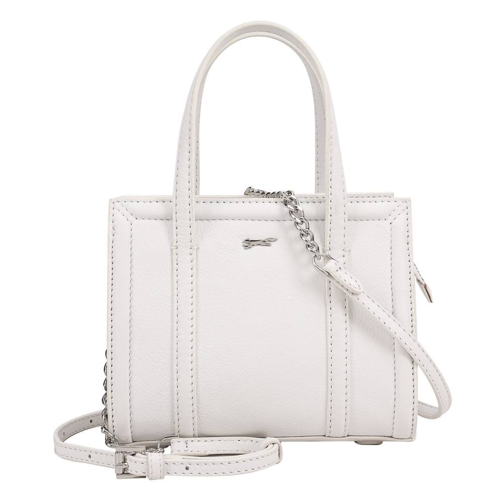 Chic square profile shoulder bag from Paul Costelloe. Made from white leather, it features a secure top zip closure, grab handles, and a removable, adjustable shoulder strap.