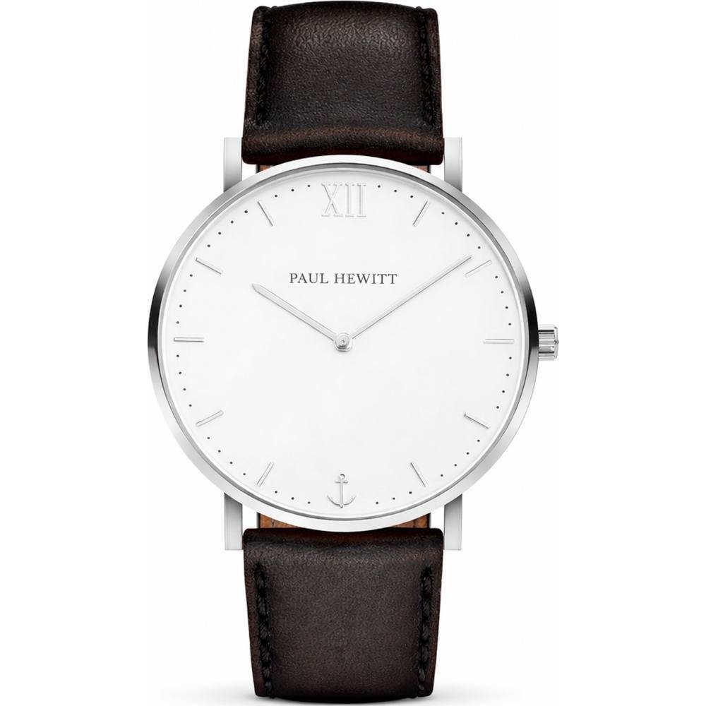 Sleek Paul Hewitt men's watch with a black leather strap and a silver-tone case. Features a minimalist dial with Roman numerals and a classic anchor logo. Ideal for everyday wear.