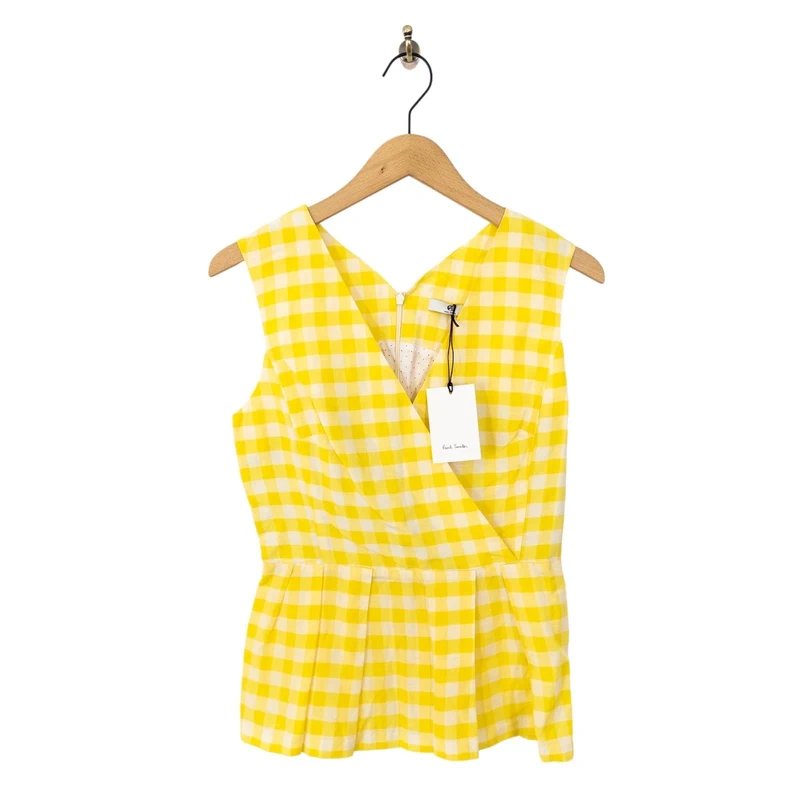 The Paul Smith Yellow Gingham Check Wrap Top is available in sizes S.