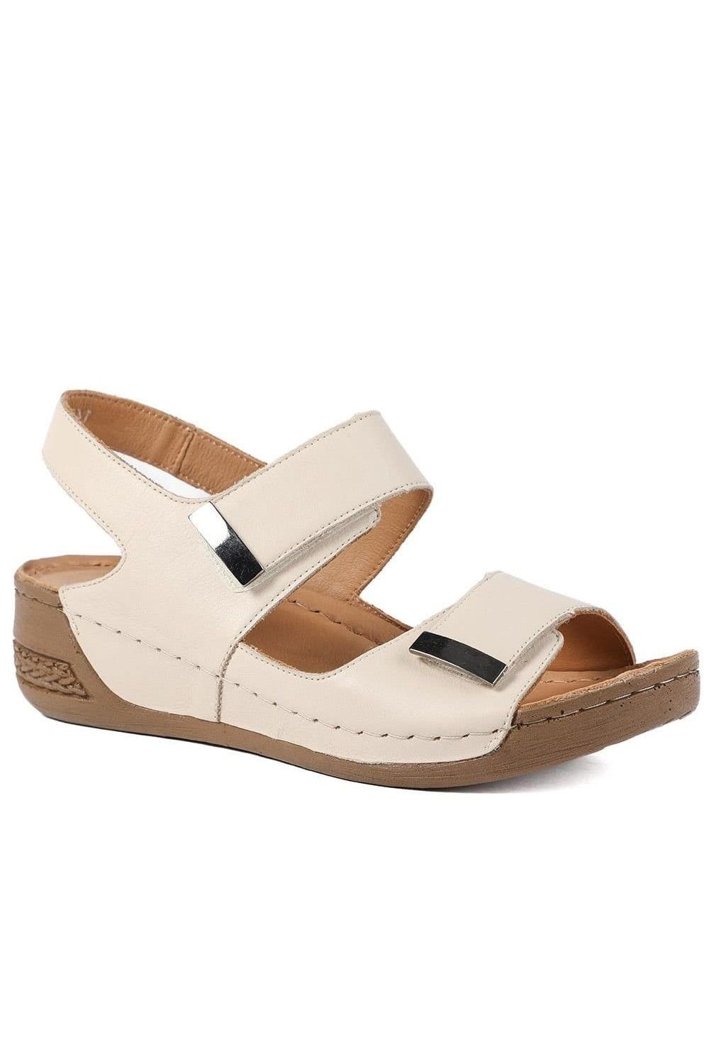 Comfortable and stylish Beige Leather Touch Fasten Wedge Sandals by Pavers. Featuring a soft leather upper, lining, and insole, these sandals offer a premium feel. The touch-fastening straps ensure a perfect fit, while the supportive wedge heel provides a subtle lift.