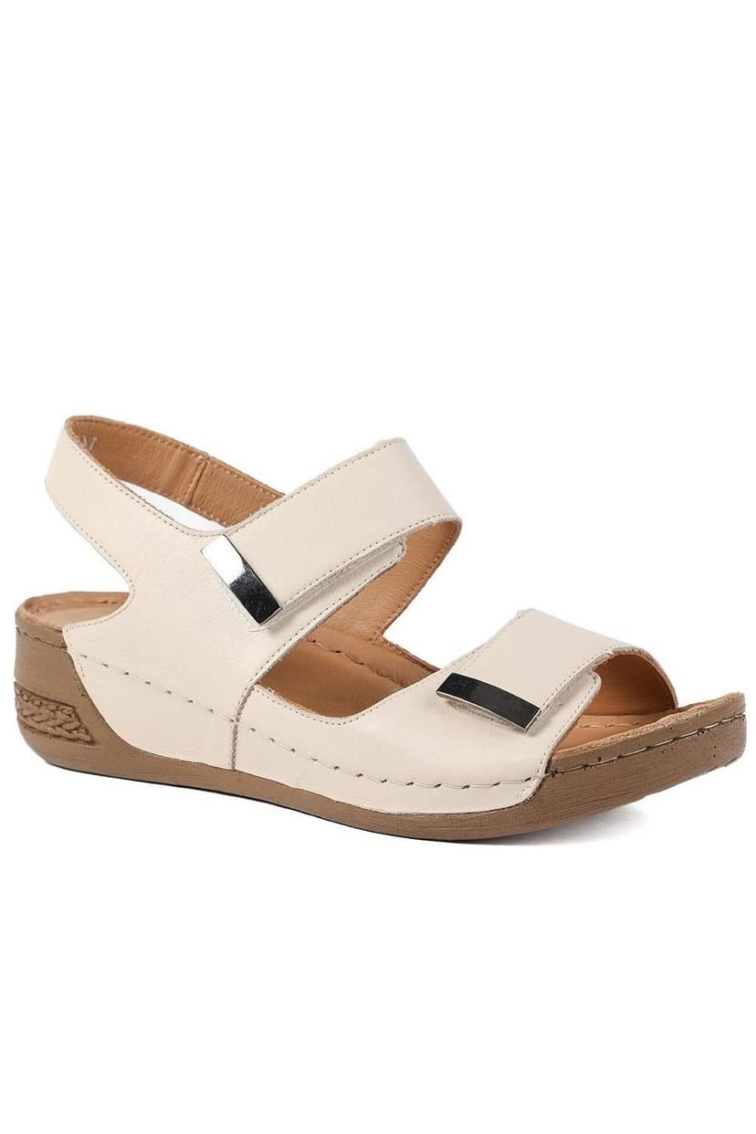 The Pavers Beige Leather Touch Fasten Wedge Sandals is ideal for casual, everyday, outdoor.